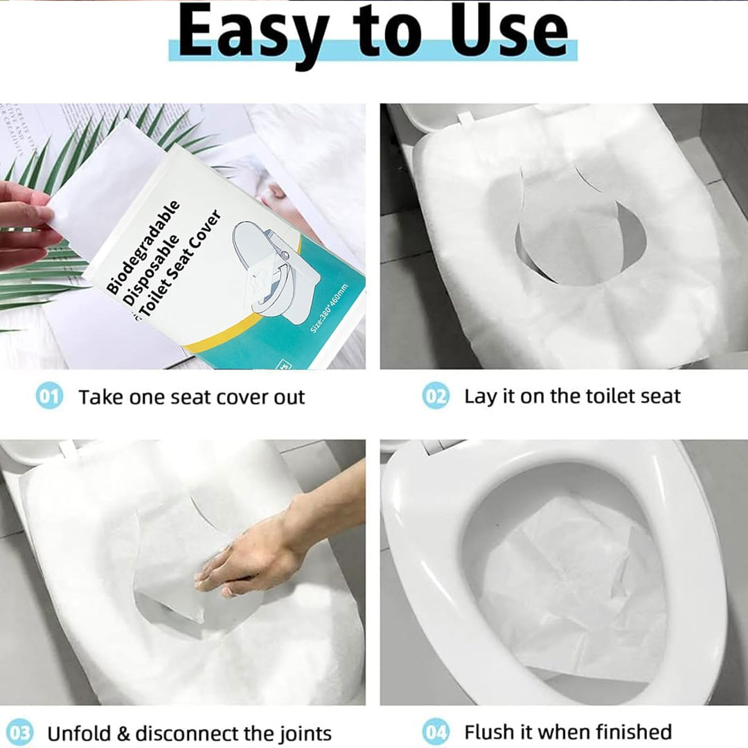 • Hygienic Barrier: The cover unfolds to a generous size, providing complete coverage over standard toilet seats for a clean, worry free experience.