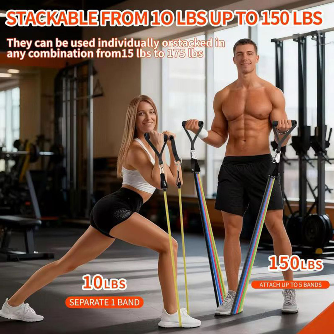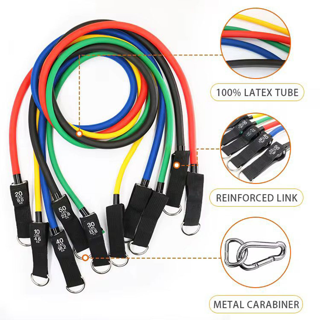 - Durable Construction That Holds Up: 100% latex tubes wrapped in protective sleeves won't snap mid workout. Metal carabiners and reinforced connection points handle the full 68 kg load without slipping or breaking.