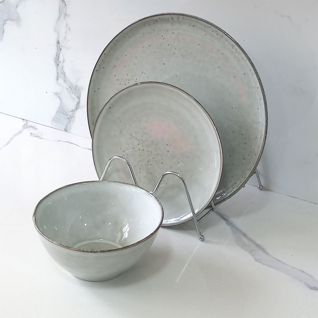 • No Two Alike: Reactive glazing scatters those grey speckles randomly across each plate during firing, so you get pottery studio vibes without paying pottery studio prices