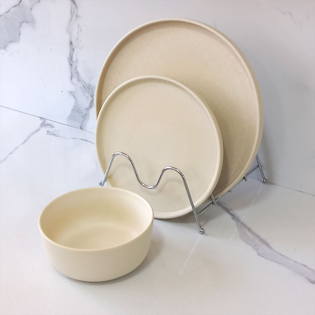 This 20cm matte beige ceramic side plate maintains the sophisticated aesthetic of its larger dinnerware counterparts, offering a piece perfect for appetizers, bread, or dessert. It features a minimalist, round design with a notably flat central surface finished in a smooth, non reflective ceramic glaze. Defined by its clean lines and distinct, low profile vertical rim, the plate's soft, creamy beige tonality ensures versatile pairing with other dinnerware, providing both elegant simplicity and practical function for contemporary table settings.