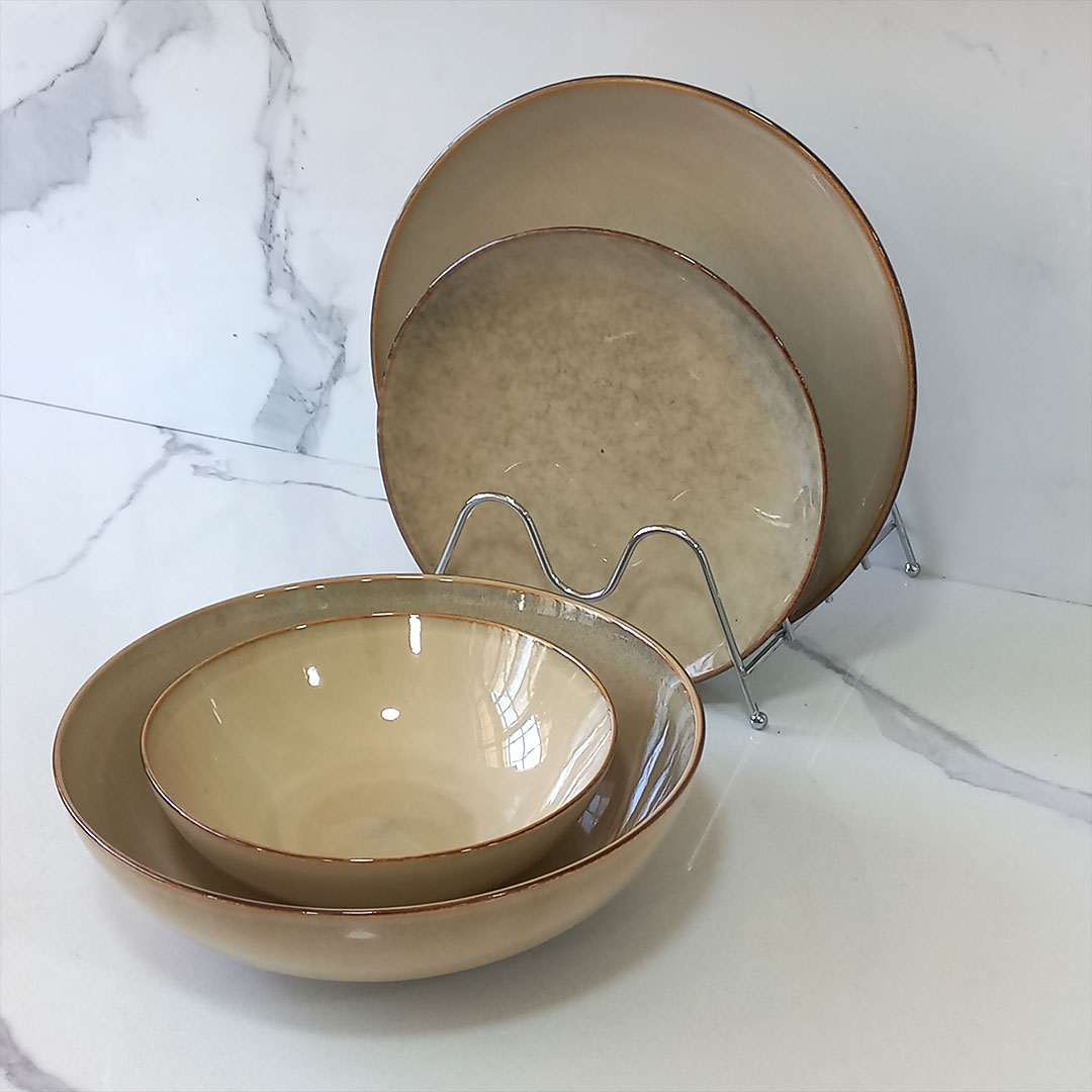 - Defined Aesthetics: A hand painted style brown rim provides a warm contrast against the creamy beige center, giving the plate a rustic, pottery studio feel that pairs well with wood or slate serving surfaces.
