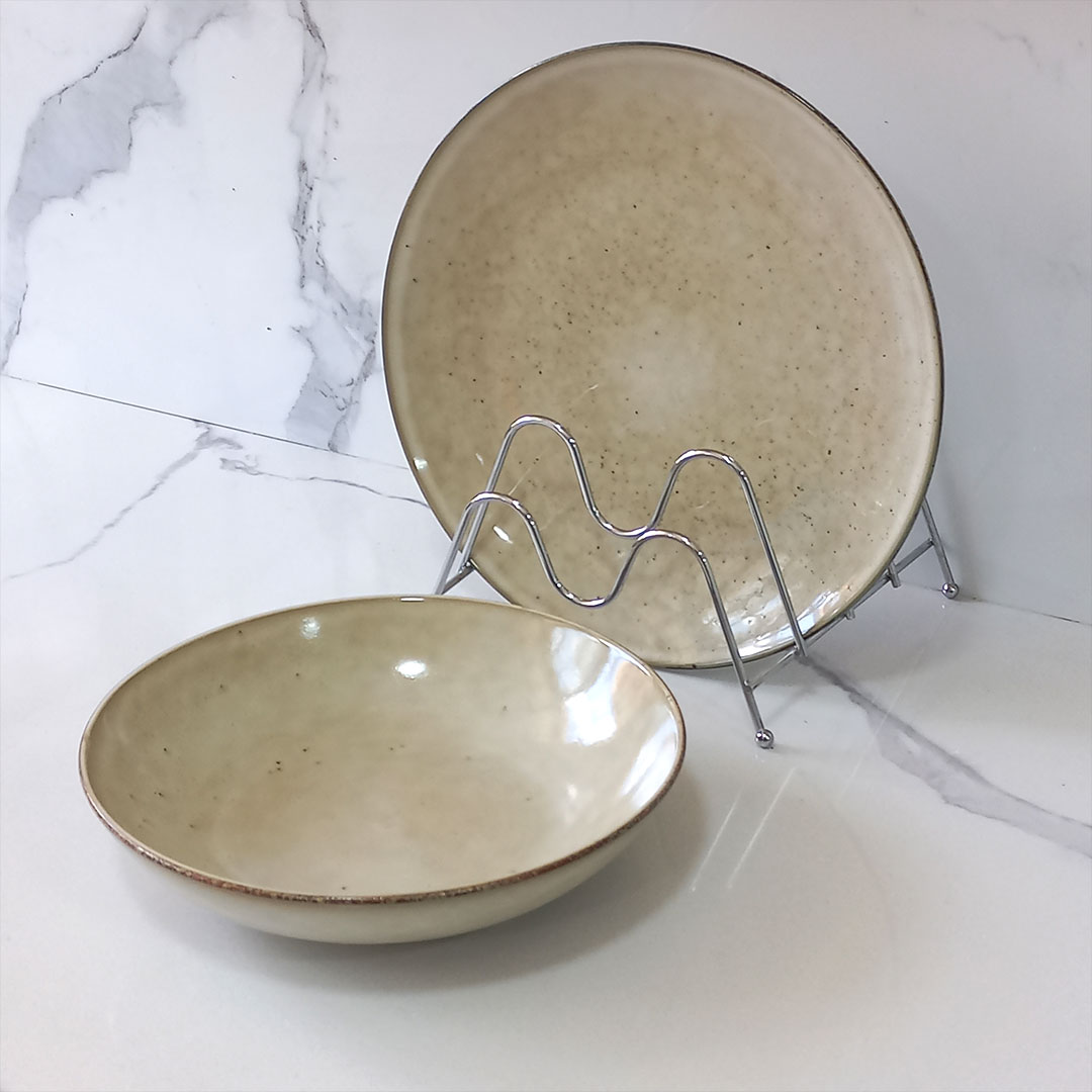 23cm Ceramic Deep Plate – Speckled Beige Reactive Glaze