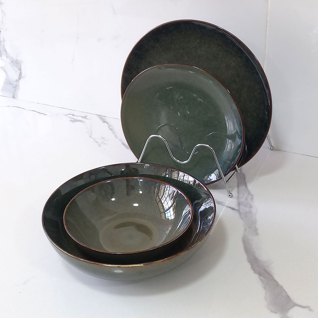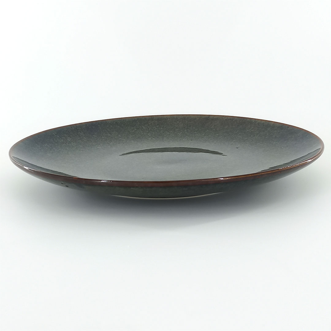 Your table deserves more than mass produced sameness. This reactive glaze ceramic dinner plate brings character to every meal, with a dark gray-green surface that shifts and pools naturally during the firing process, meaning yours won't look exactly like anyone else's.