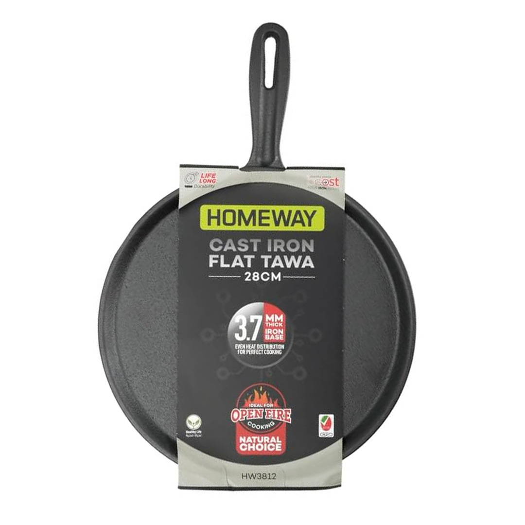 28cm Heavy Duty Pre-Seasoned Cast Iron Pan / Flat Tawa – Homeway