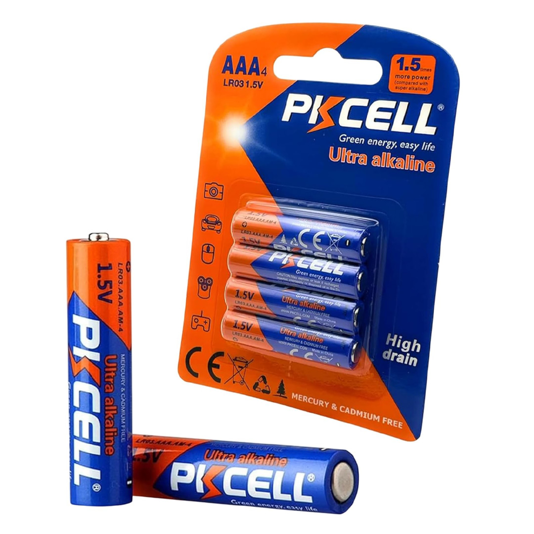 What's Included: 1 x 4-Pack of PKCELL AAA LR03 1.5V Ultra Alkaline Batteries in retail blister packaging.