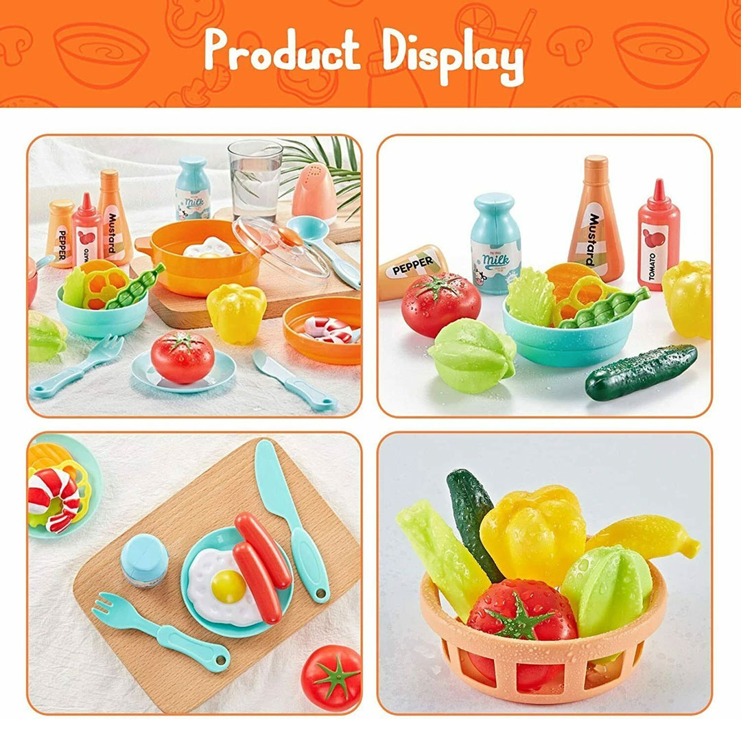 - Generous Accessories at 55 Pieces: The accessory count is genuinely high for this price range, vegetables, sausages, a fried egg, condiment bottles (ketchup, mustard, tomato sauce, milk), juice boxes, and candy pieces fill out the set so kids always have something to cook, serve, or stock on the shelves.