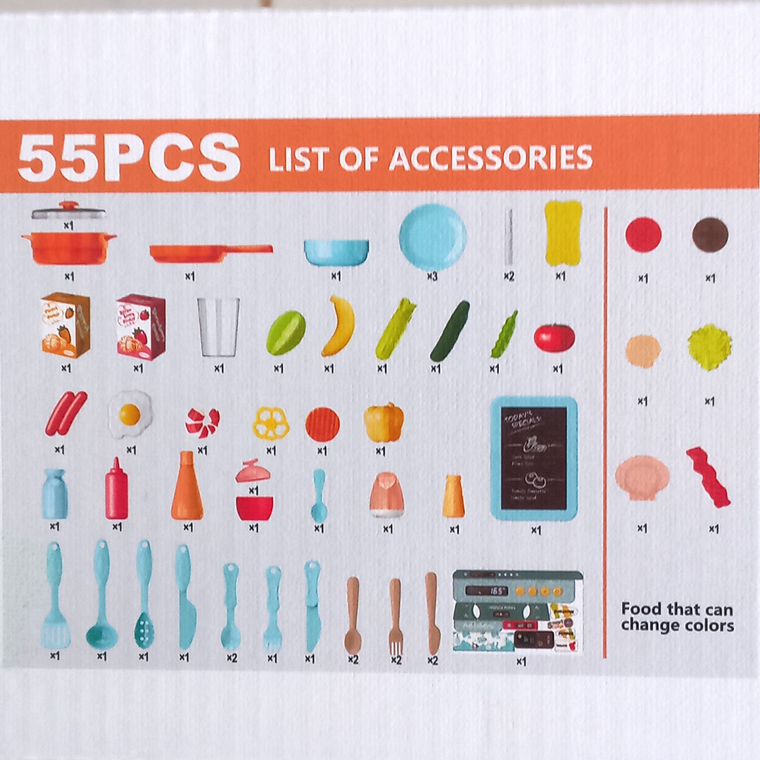 55pc Kids Kitchen Play Set with Light, Sound and Water