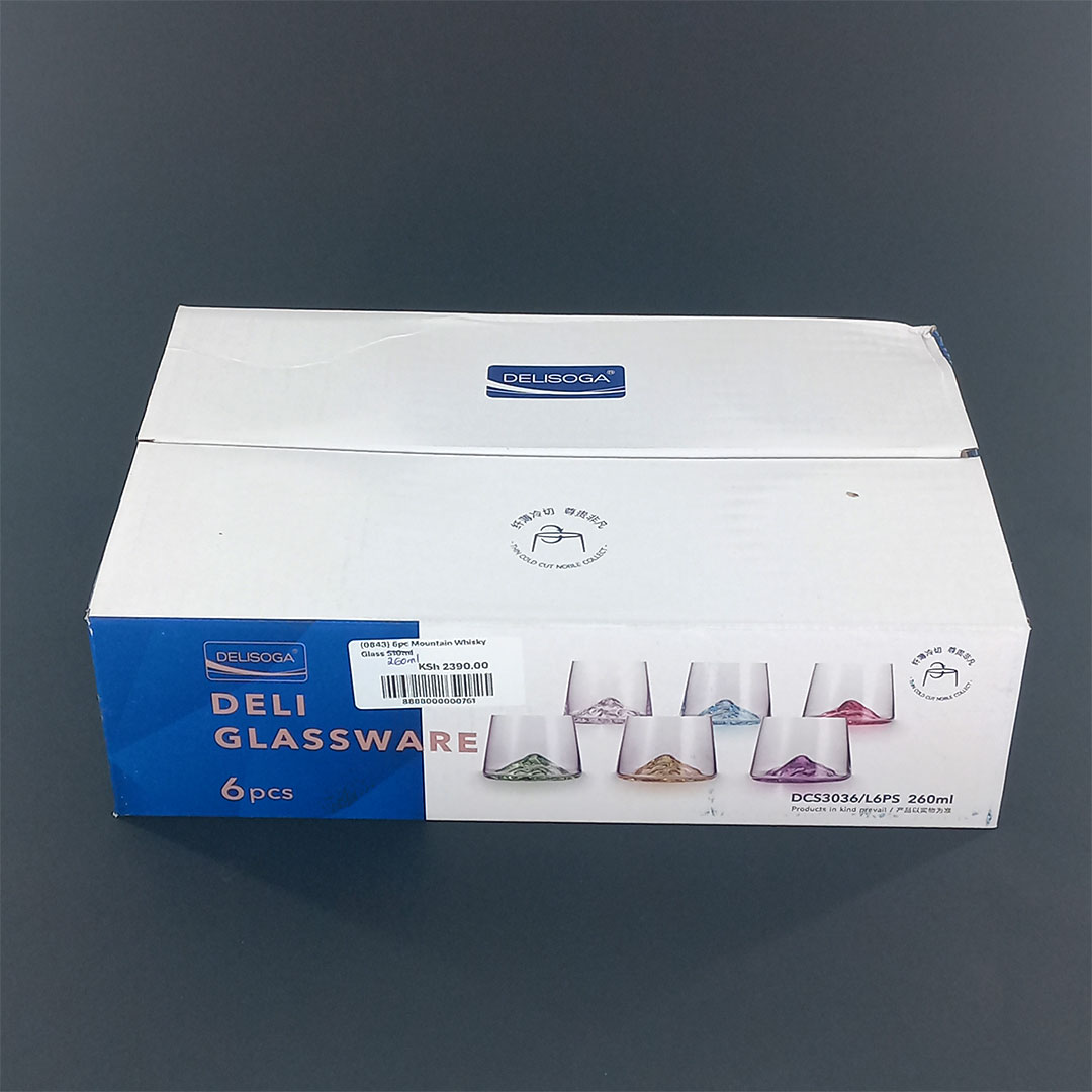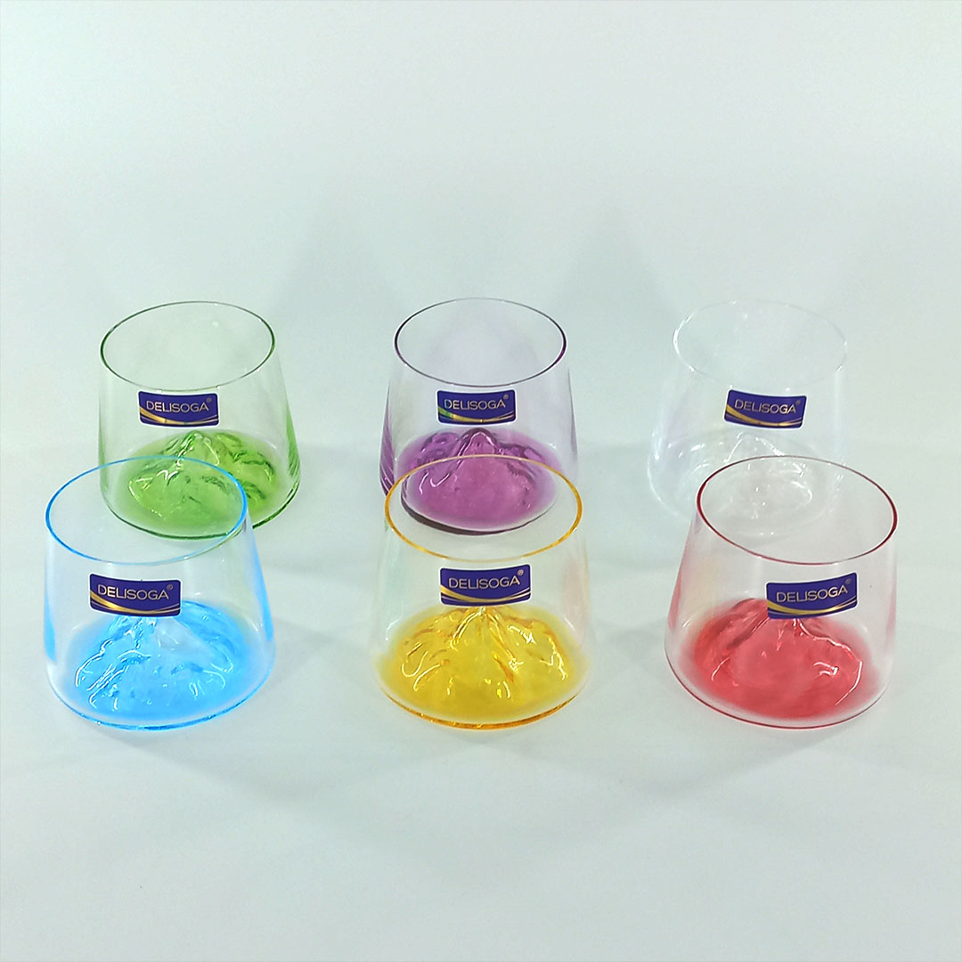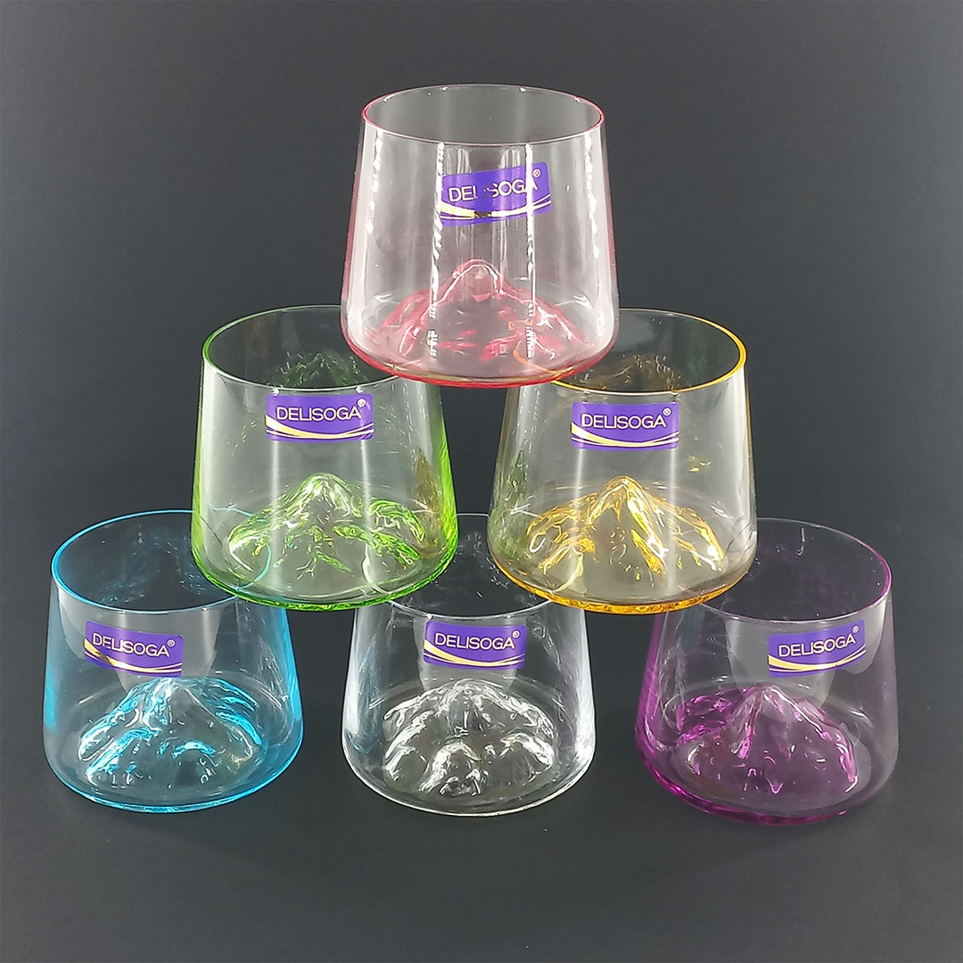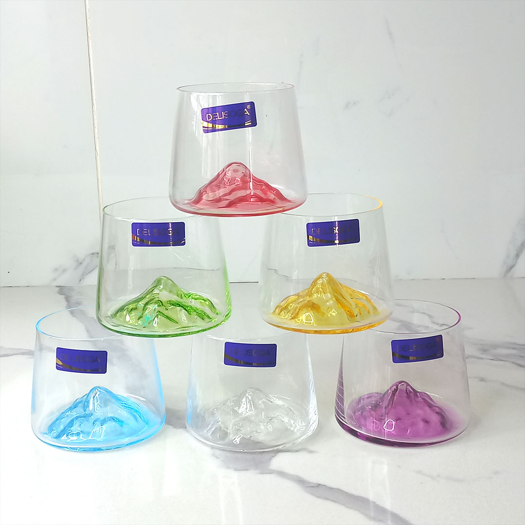 6pc 260ml Mountain Whisky Glass – Colorful Base Design