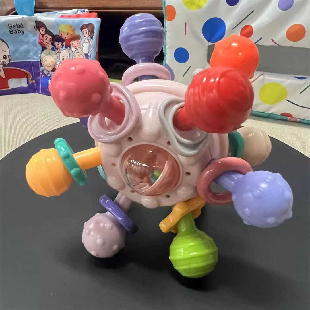 Teething months are rough on everyone, and giving your baby something that soothes their gums, keeps their hands busy, and catches their attention all at once takes a real load off. This sensory teether ball does exactly that, with multiple chewable textures, a rattling bead center, and enough color to hold a curious baby's gaze.