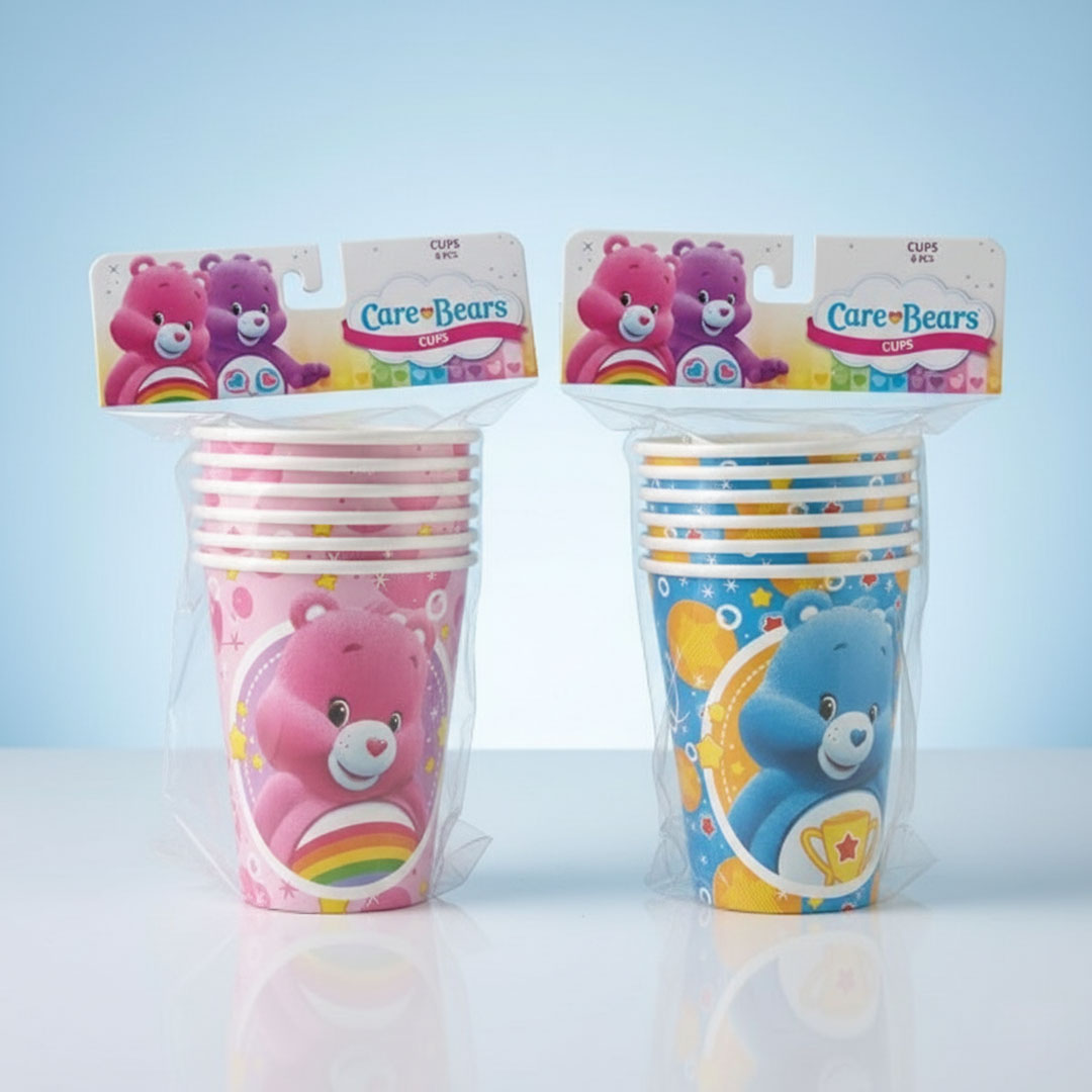 Make birthdays and celebrations extra cheerful with these adorable paper cups. Available in pink or blue, each cup features a bright, friendly design that kids will love. Perfect for juice or soft drinks.
