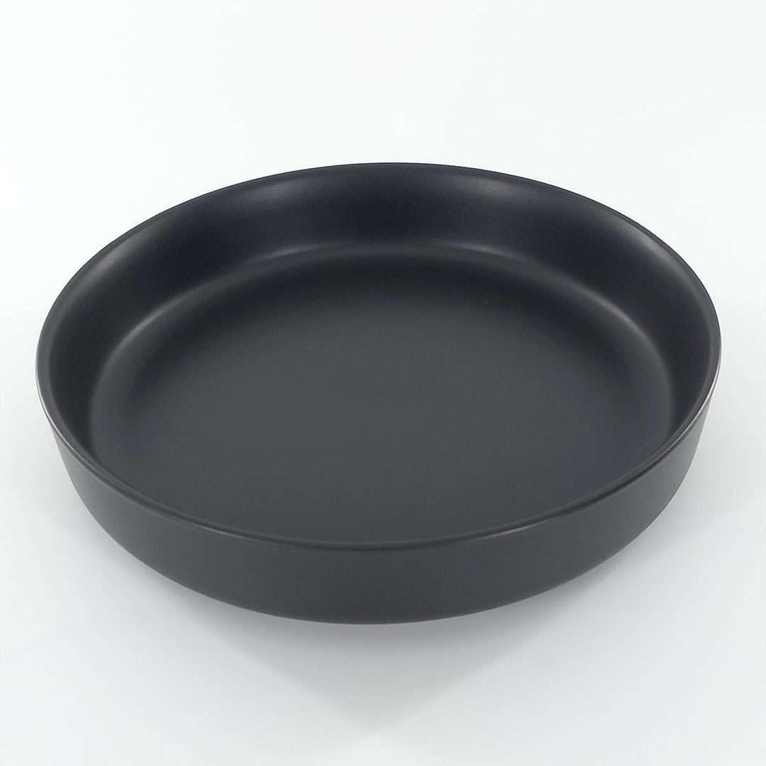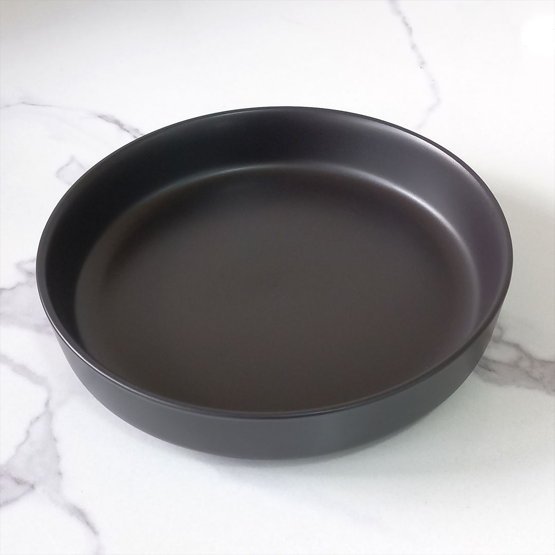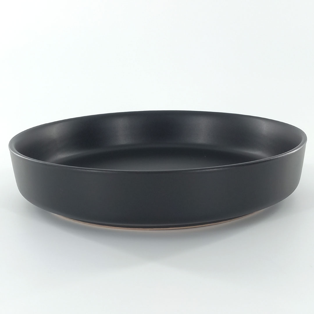 This 22cm ceramic deep plate features a striking matte black finish, offering a modern and sophisticated aesthetic. Its deep, wide basin design with a straight vertical rim makes it exceptionally versatile, perfect for serving everything from pasta and salads to soups.
