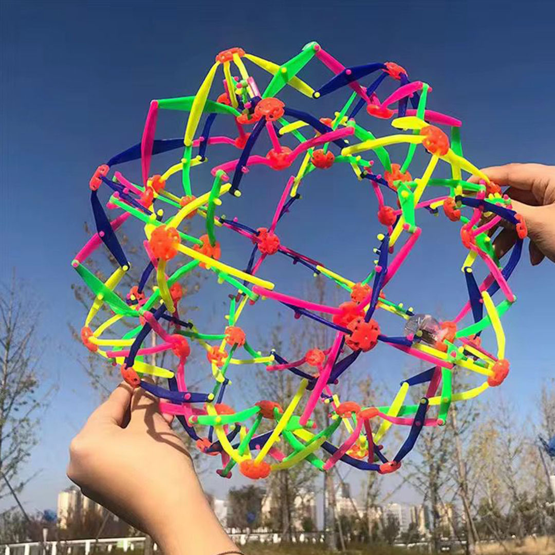 Toss it small, catch it big. This expandable ball toy collapses to 16cm in your hand then pulls open to a full 32cm lattice sphere, and kids genuinely cannot put it down once they see it happen.