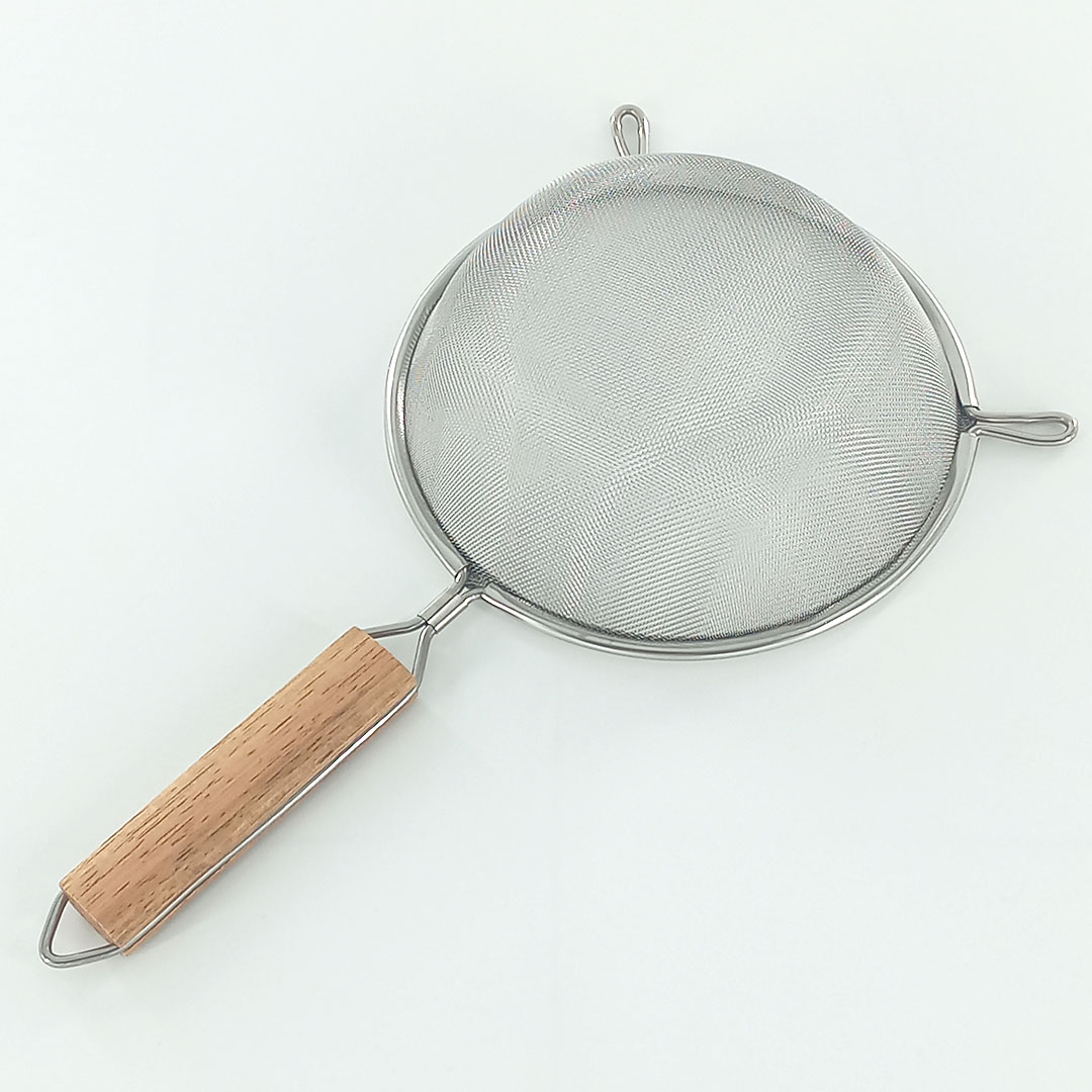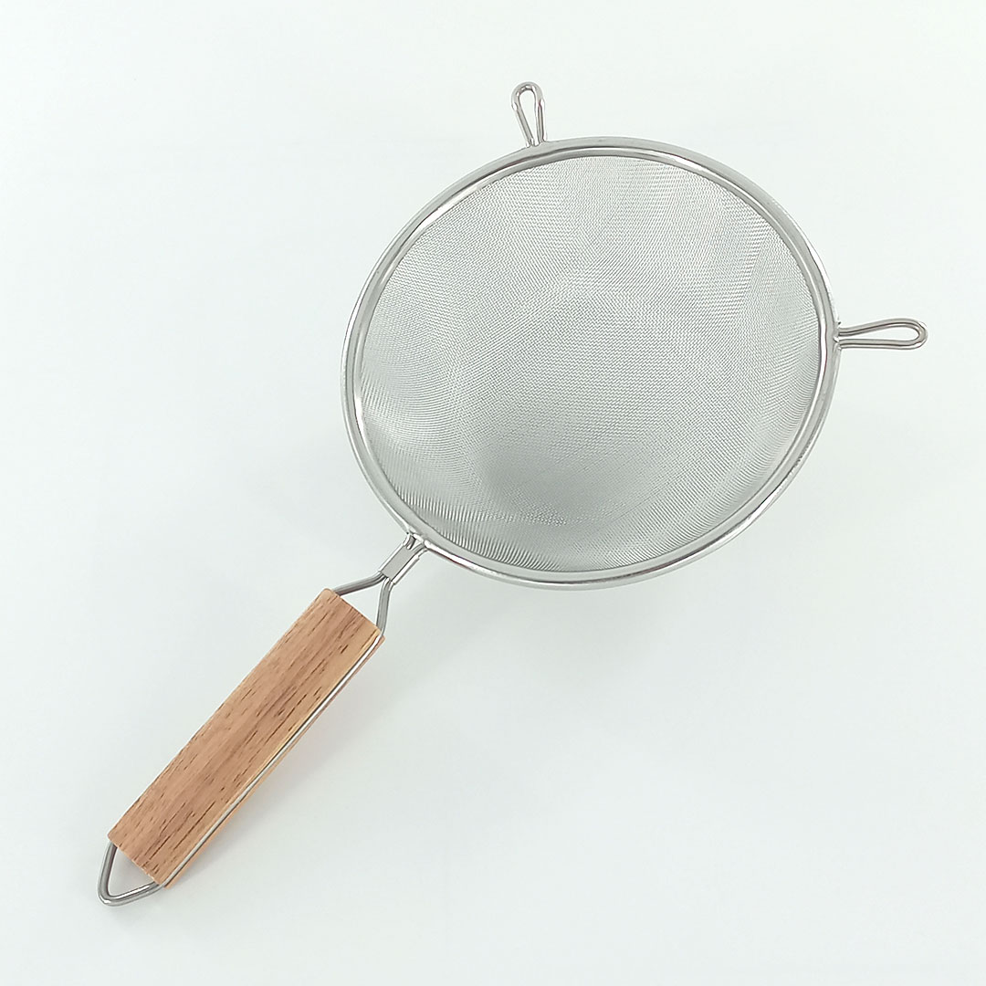 Fine Mesh Strainer with Wooden Handle – Stainless Steel Kitchen Sieve