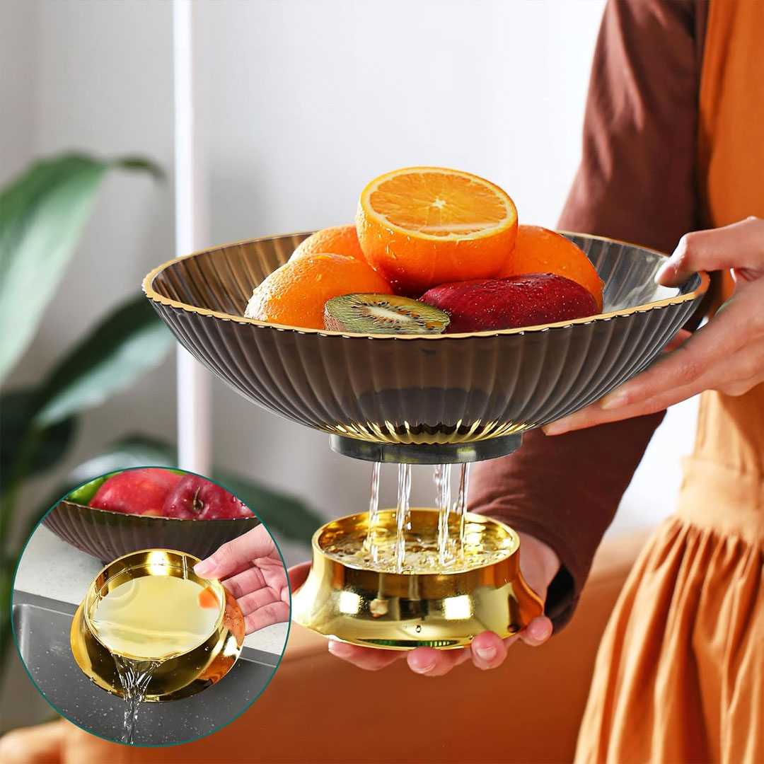 Dual Layer Design – Inner bowl drains excess water straight into the gold base, keeping fruit dry and preventing spoilage.