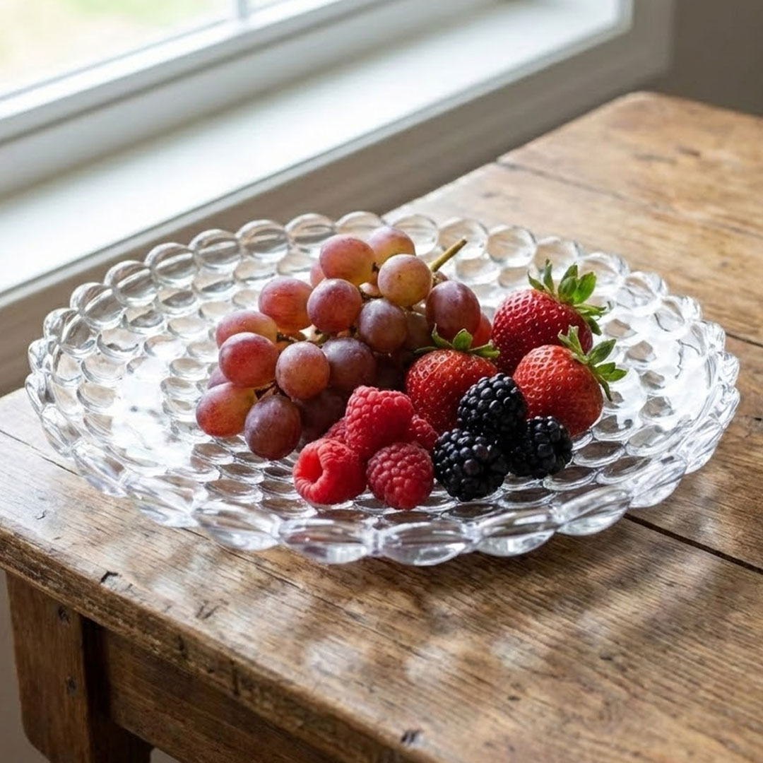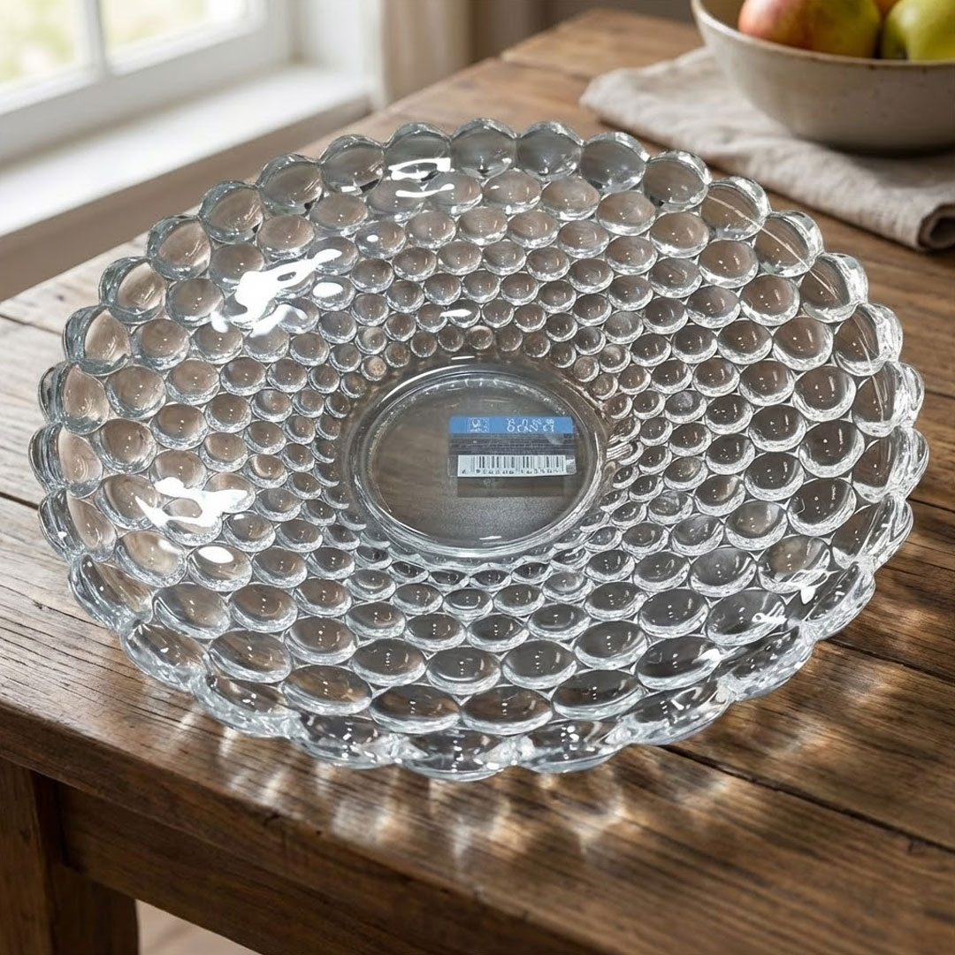 This charming 24cm glass platter catches every glint of light through its raised bubble design, instantly adding a touch of sparkle to your table. Whether you’re serving desserts or simply using it as a decorative centerpiece, it elevates your home dining without fuss.