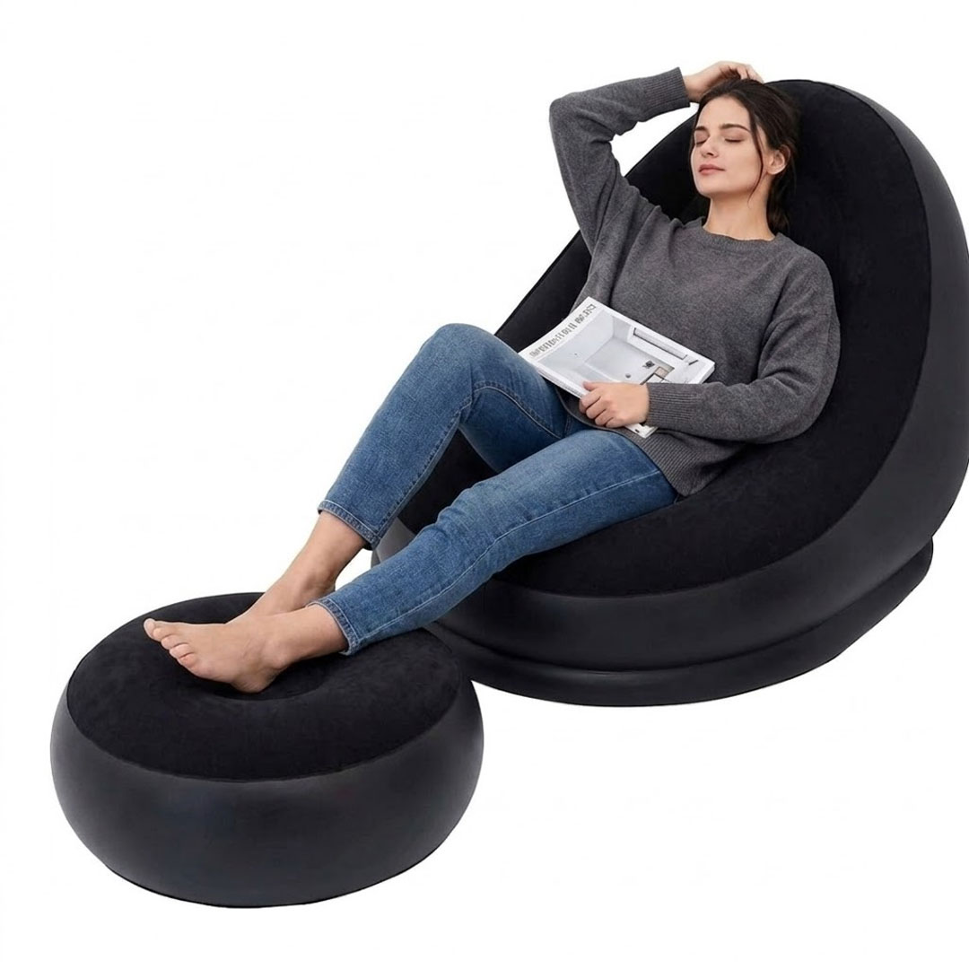 Most chairs make you sit up straight whether you want to or not. This inflatable lazy sofa lets you settle into a deep, reclined pod position with your legs stretched out on the included ottoman, which is exactly the kind of seating that makes a long evening feel genuinely restful.