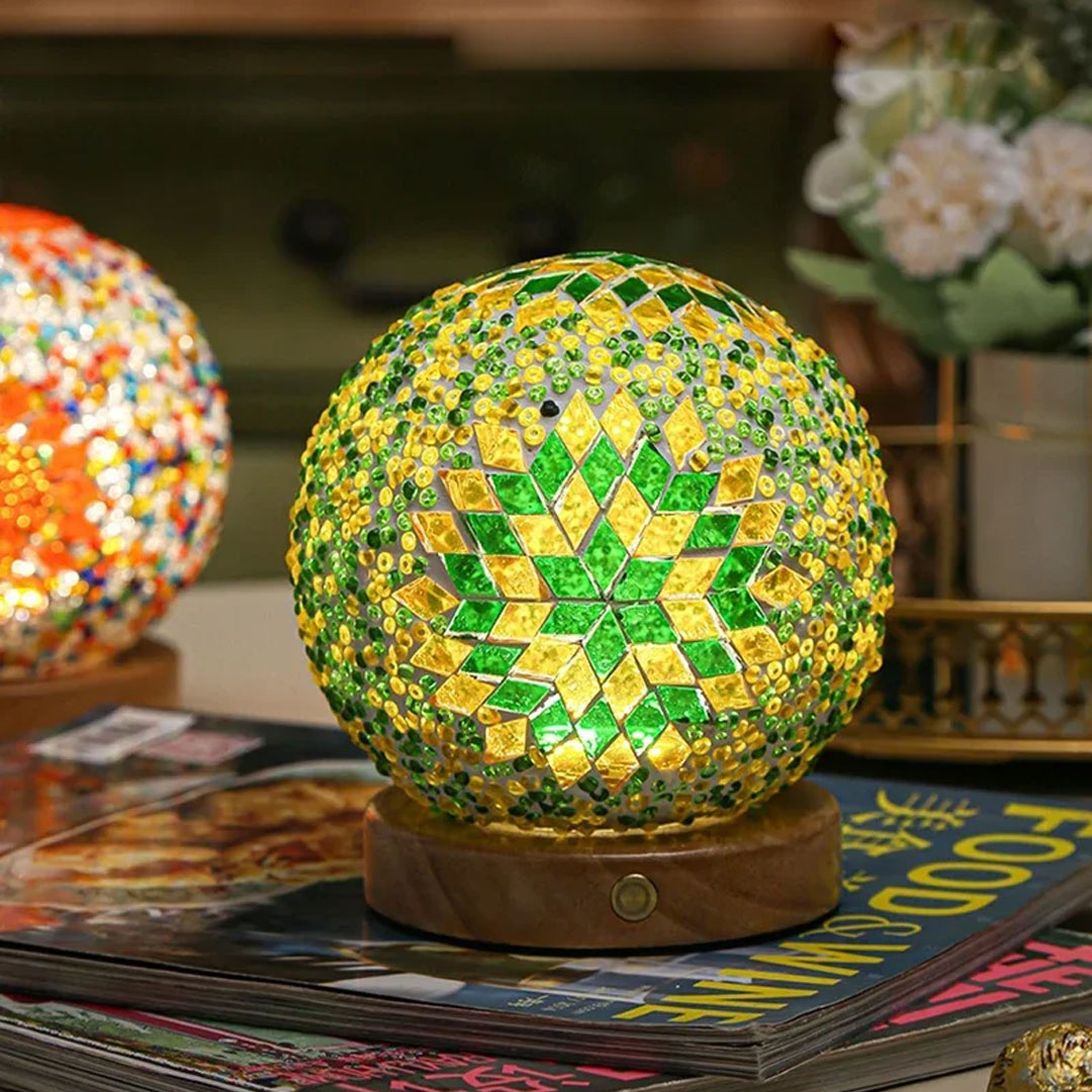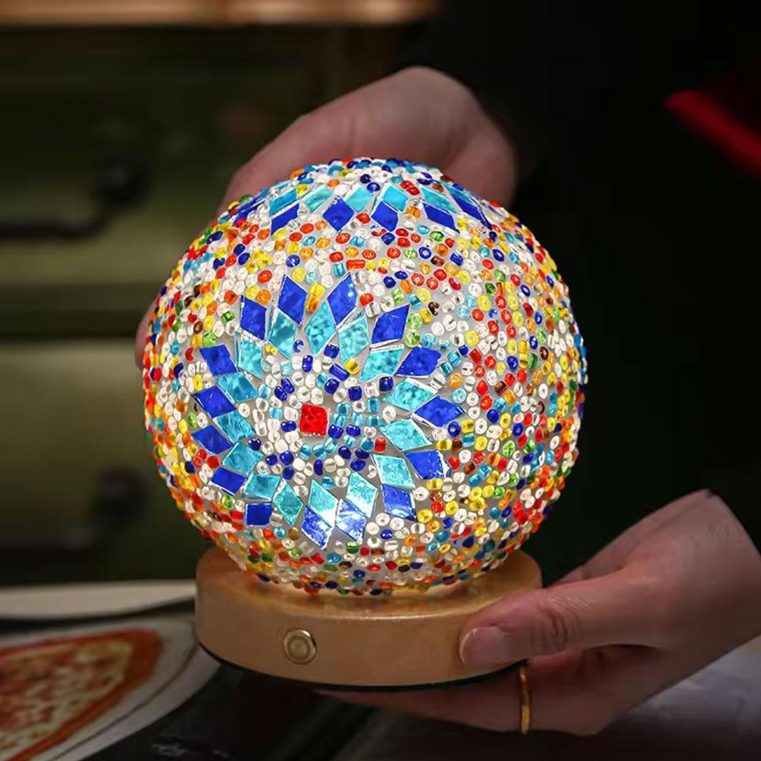Mosaic Ball Table Lamp | Hand Beaded Boho Night Light