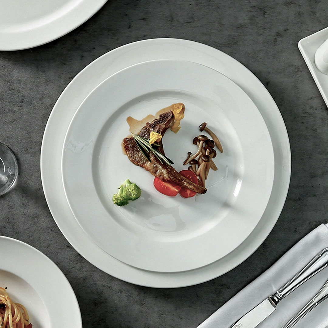 Porcelain that can't handle a busy service won't last a week behind a commercial pass. This plate is fired at 1280°C, giving it the density and chip resistance that hotels, restaurants, and cafes need from dinnerware that gets stacked, washed, and used dozens of times a day.
