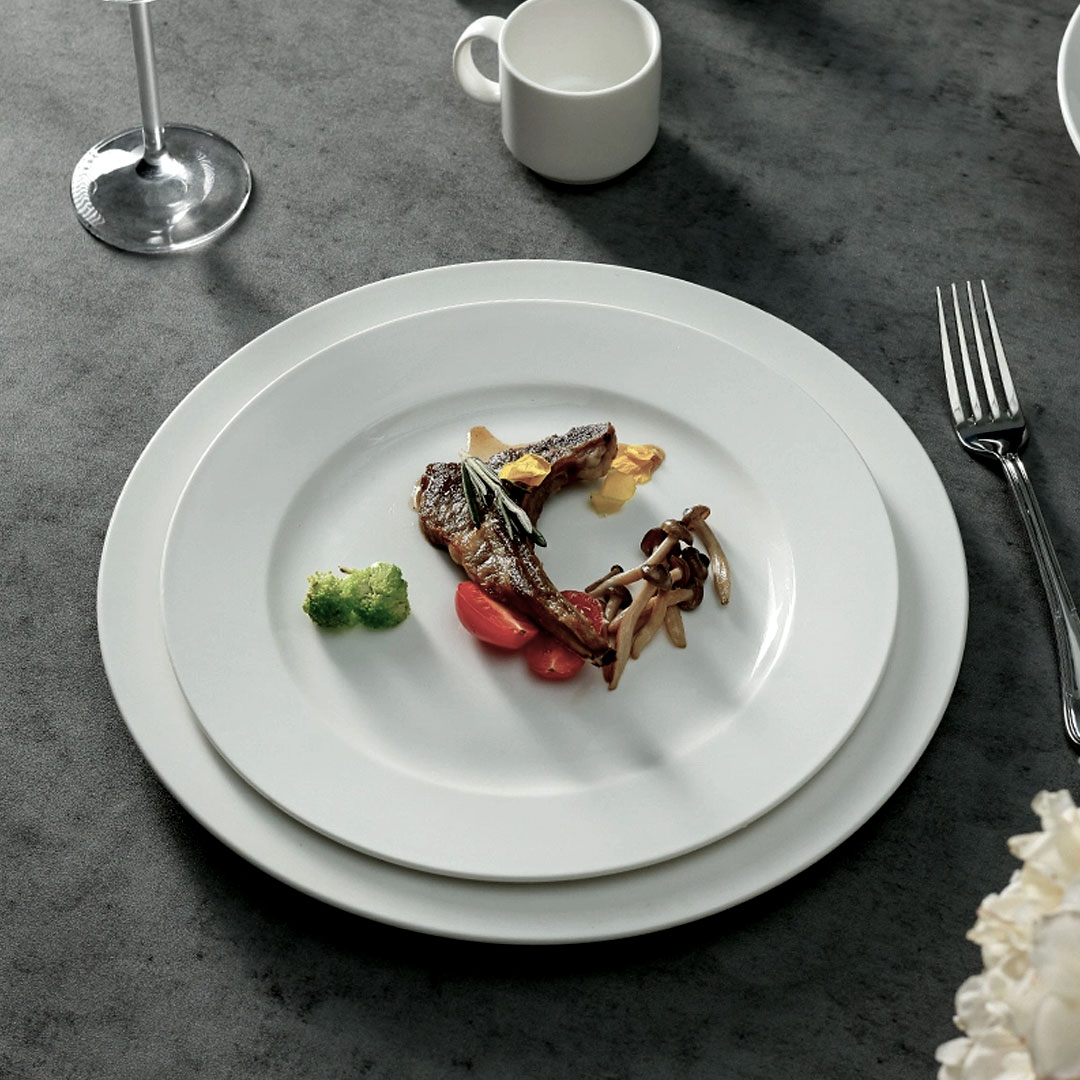 • Wide Rim for Plating Room: The broad, flat rim gives chefs a defined well at the centre and a generous border around it, making it straightforward to plate neatly without food crowding the edge.