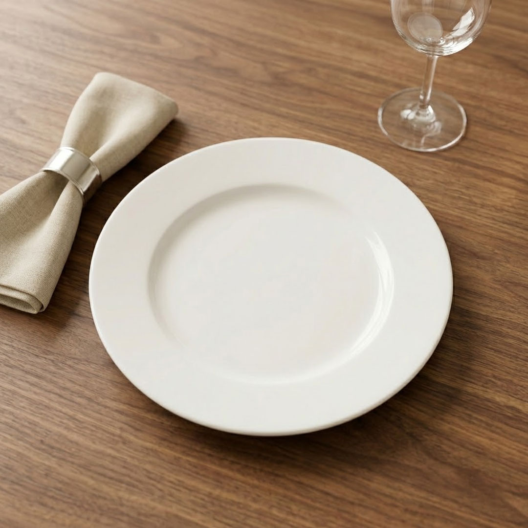 • High Fire Durability: Fired at 1280°C, the porcelain vitrifies fully, producing a plate that is dense, chip resistant, and able to hold up through the stacking, sliding, and repeated washing of a busy commercial kitchen.