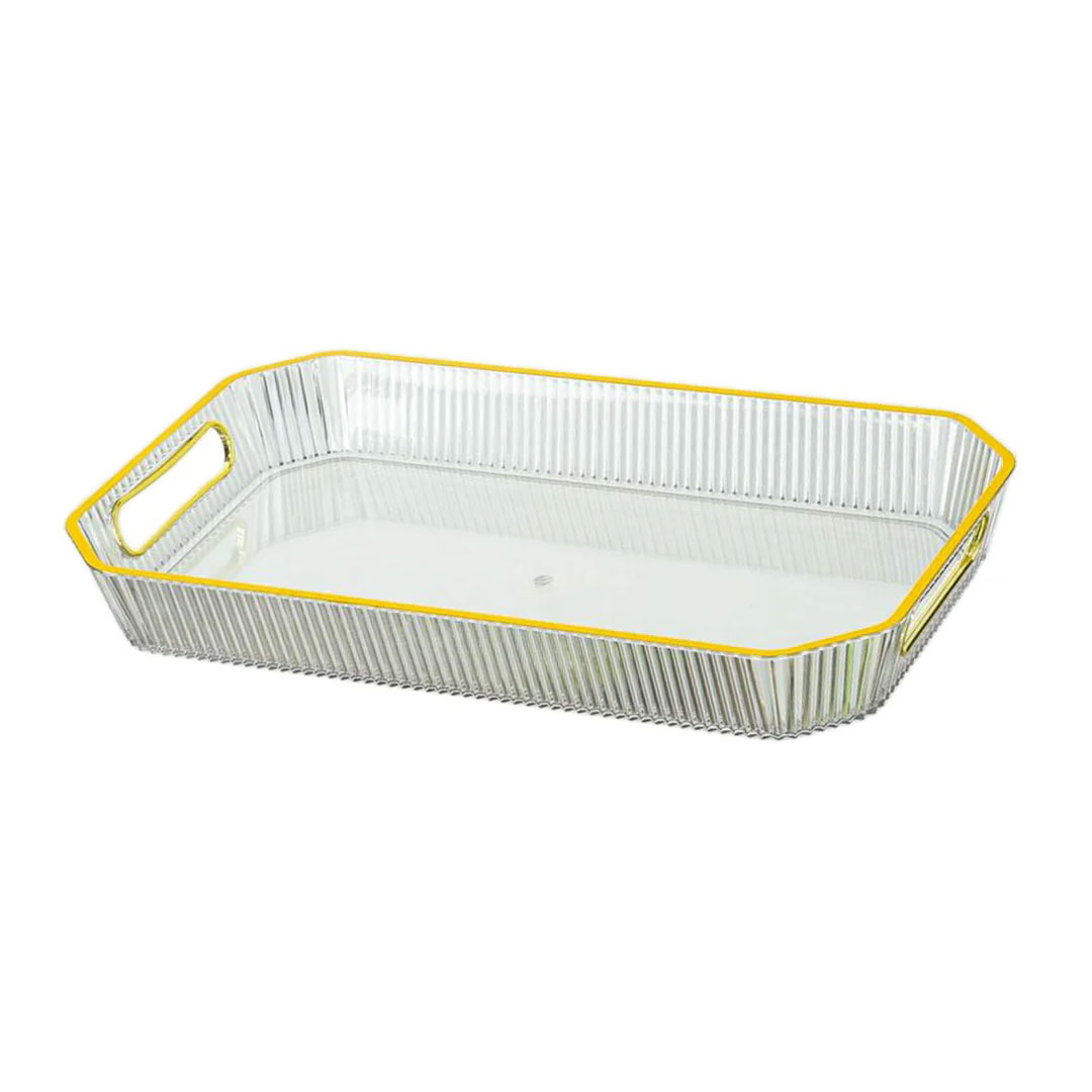 Stylish Finish – Transparent tray with a golden rim adds a clean, modern touch to any setting.