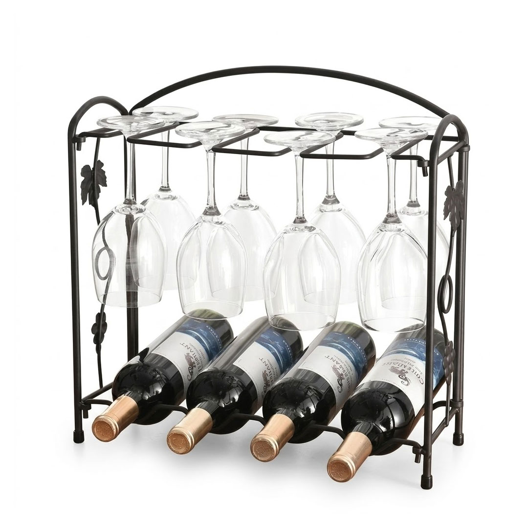 • Decorative Grape Leaf Detailing: Cast metal vine and leaf accents along the sides give the rack a classic, understated look that works well on a bar cart, sideboard, or kitchen counter.