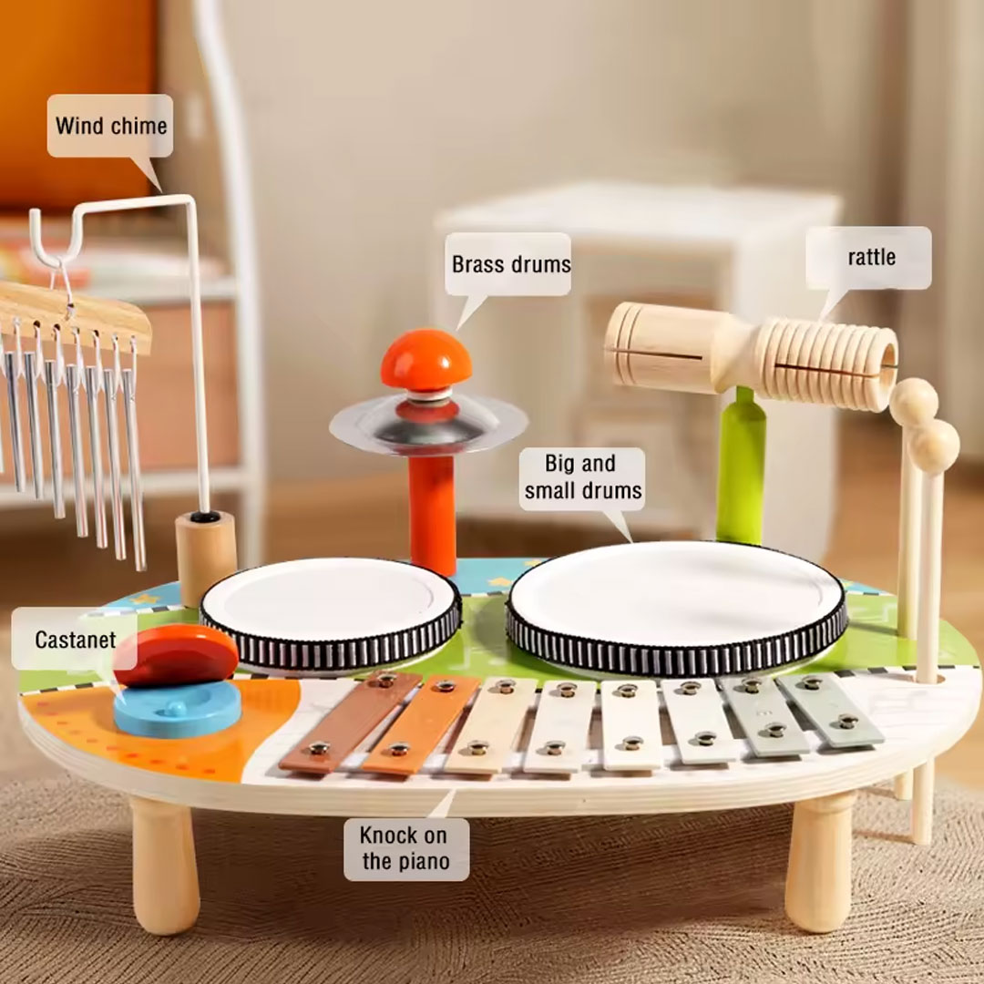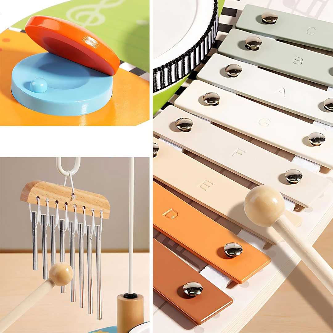 - Hands Learn While Ears Listen: Striking different surfaces teaches cause and effect. Hit the drum hard, get a boom; tap the xylophone gently, hear a clear note. Fine motor skills develop while they figure out how to make each instrument work.